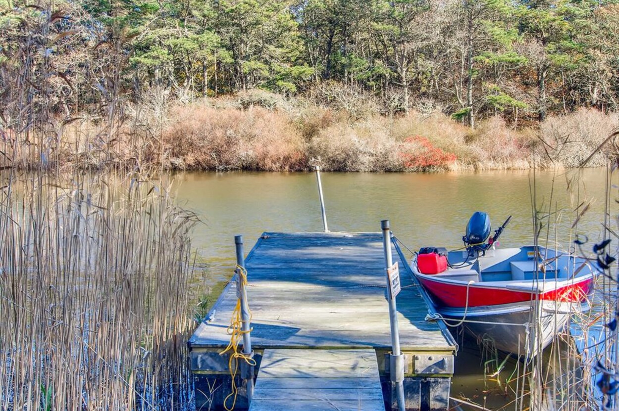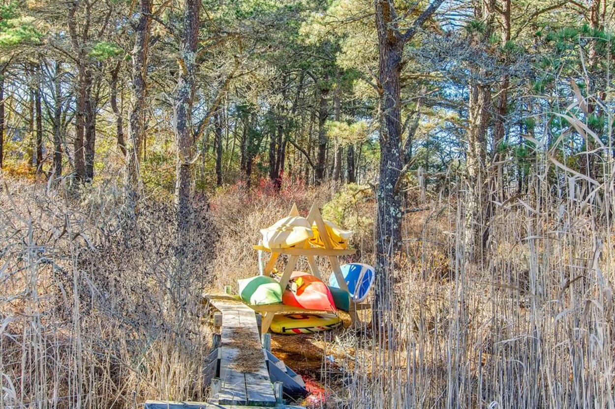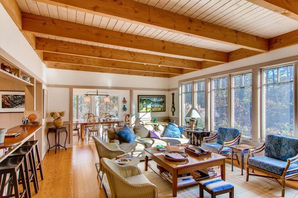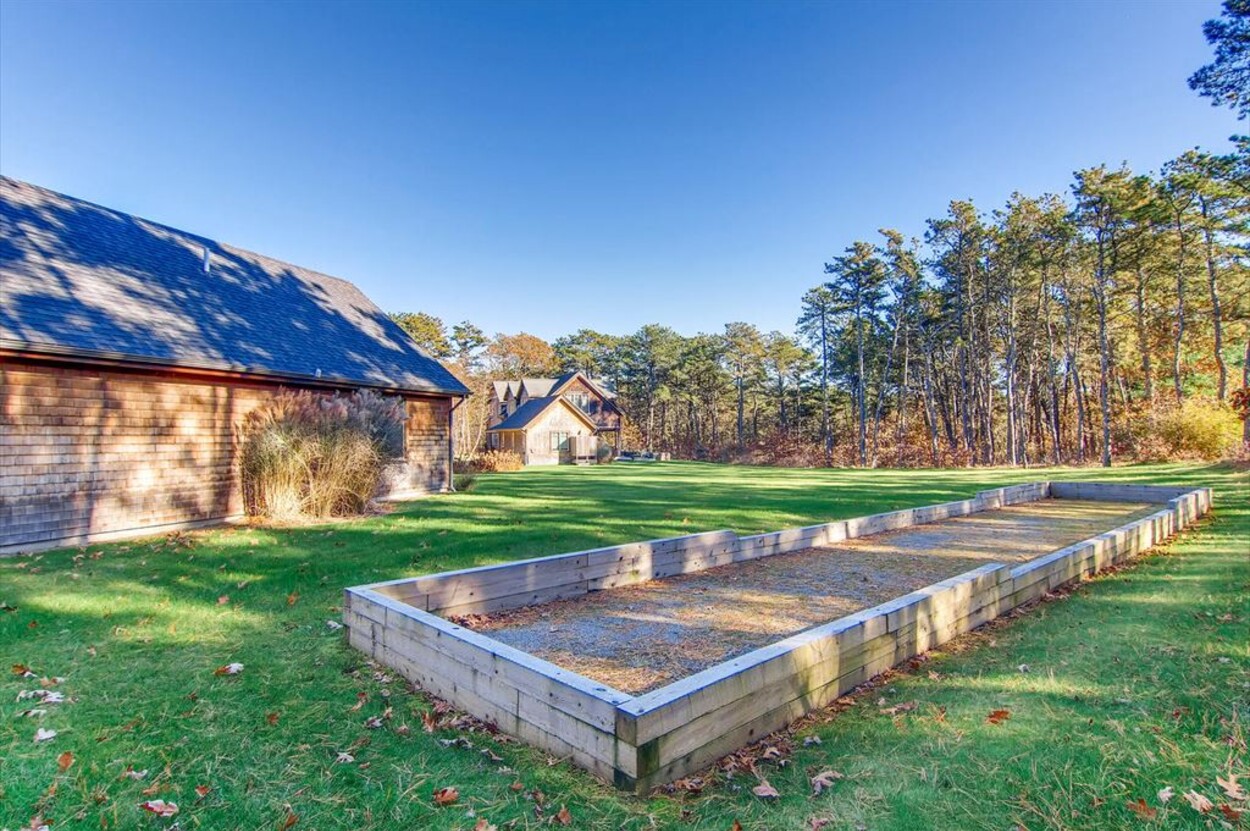 This lovely air conditioned home on Tisbury Great Pond offers three bedrooms, each has its own bath and an additional half bath. This property has a full house generator and a gracious flow with many different spaces for a family to enjoy including the open living dining kitchen area, separate family room, stone patio, expansive lawn and bocce court. Set on four private acres with a waterview of Tiahs Cove, there is a short path leading down to the dock. Head off in your kayak and explore the beauty of Tisbury Great Pond and the barrier beach. A one bedroom guesthouse may be added for an additional $2500 a week.
