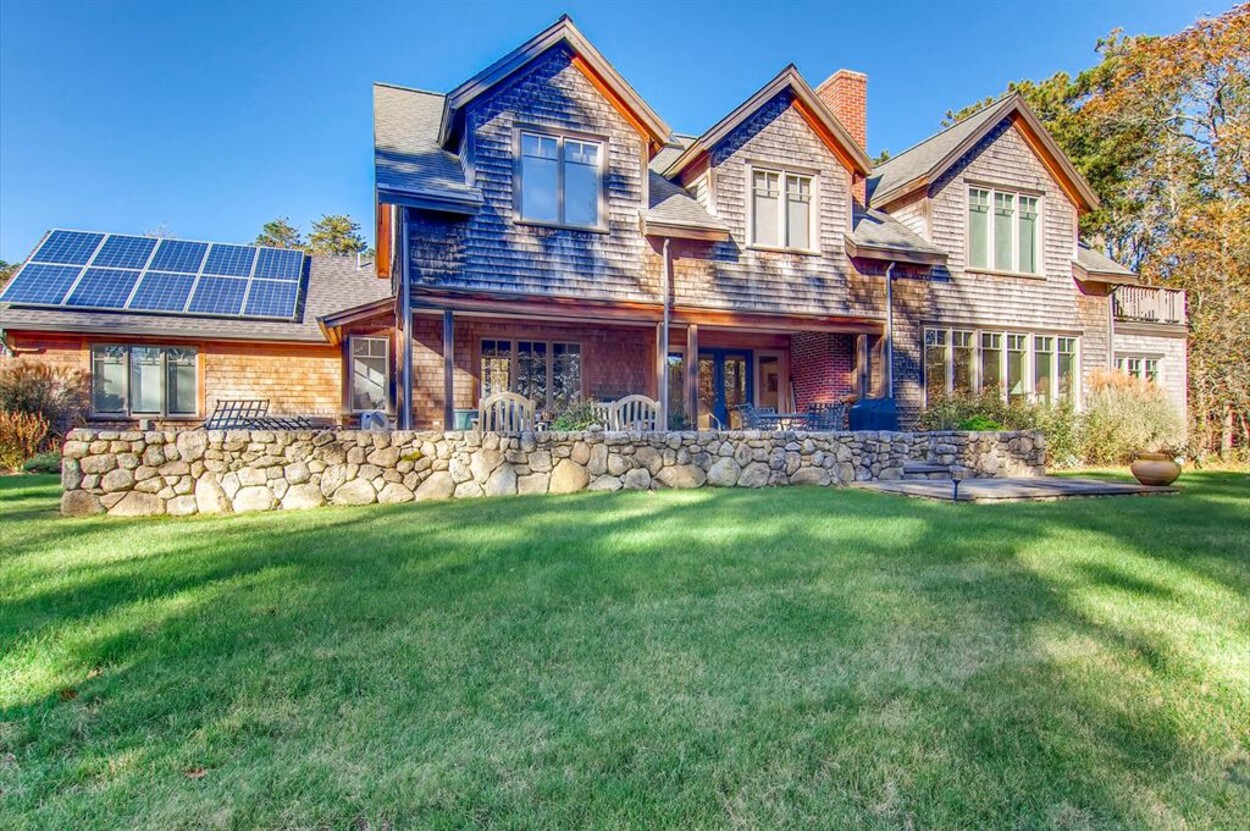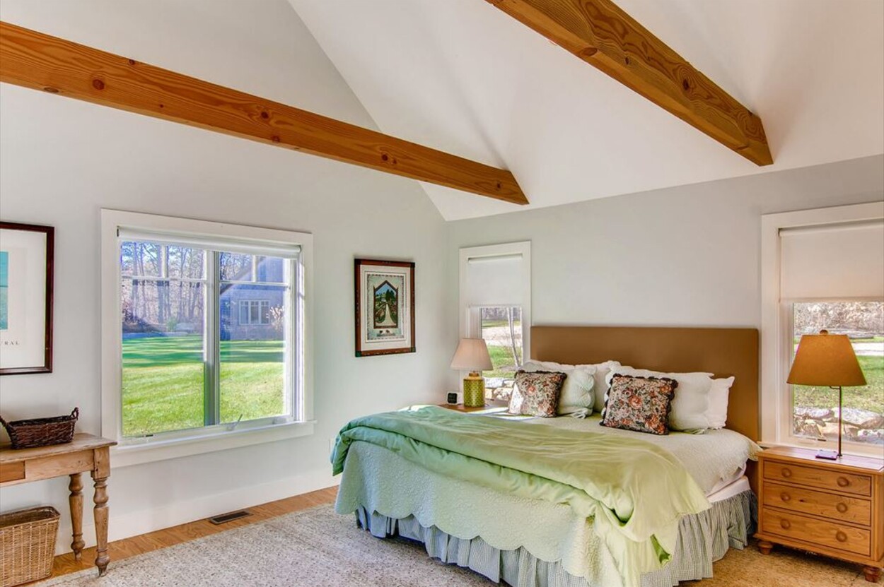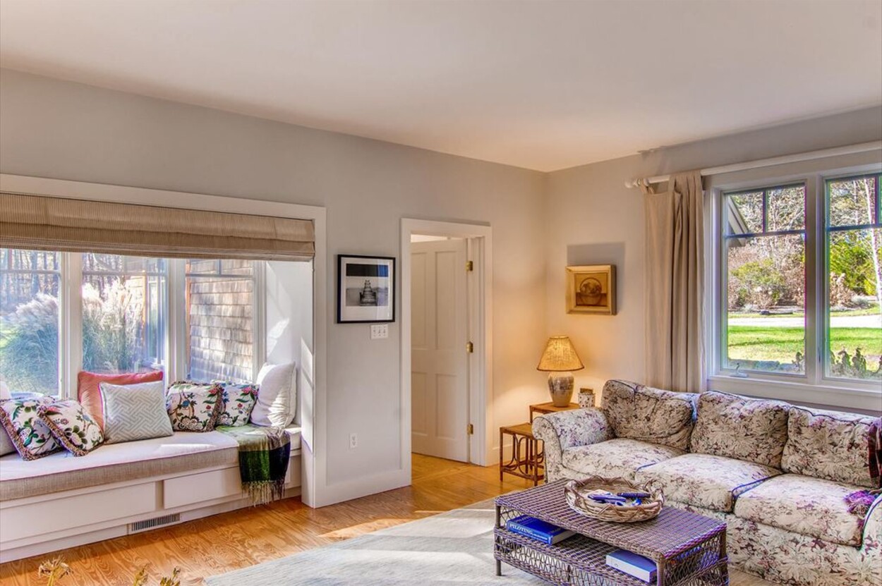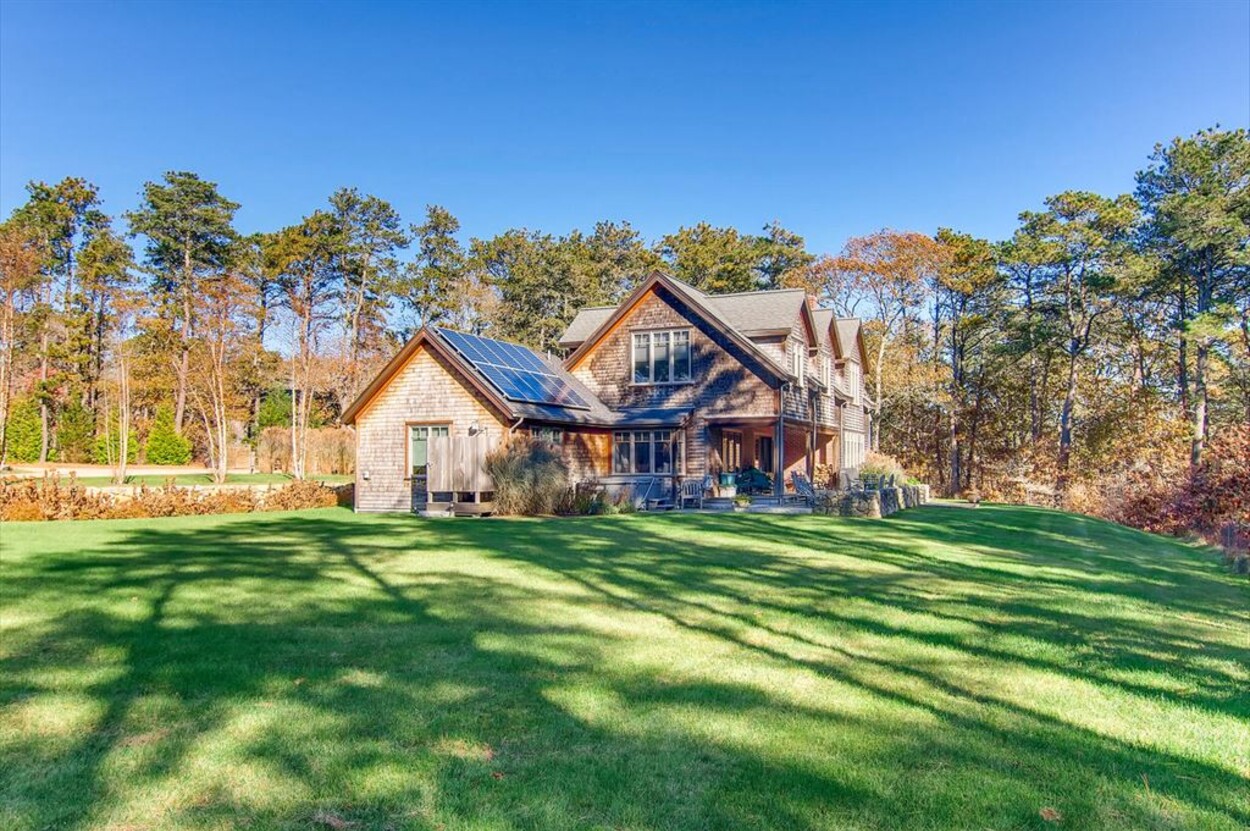 This lovely air conditioned home on Tisbury Great Pond offers three bedrooms, each has its own bath and an additional half bath. This property has a full house generator and a gracious flow with many different spaces for a family to enjoy including the open living dining kitchen area, separate family room, stone patio, expansive lawn and bocce court. Set on four private acres with a waterview of Tiahs Cove, there is a short path leading down to the dock. Head off in your kayak and explore the beauty of Tisbury Great Pond and the barrier beach. A one bedroom guesthouse may be added for an additional $2500 a week.