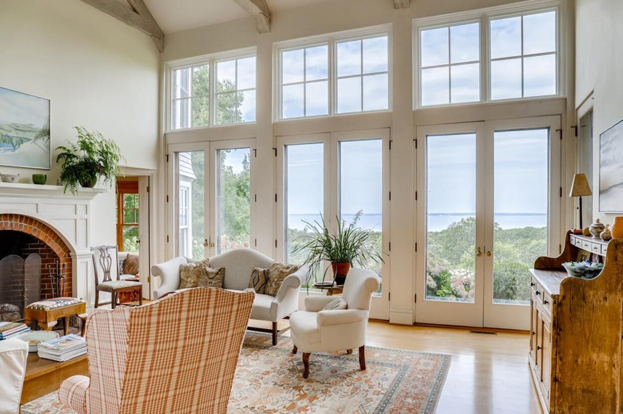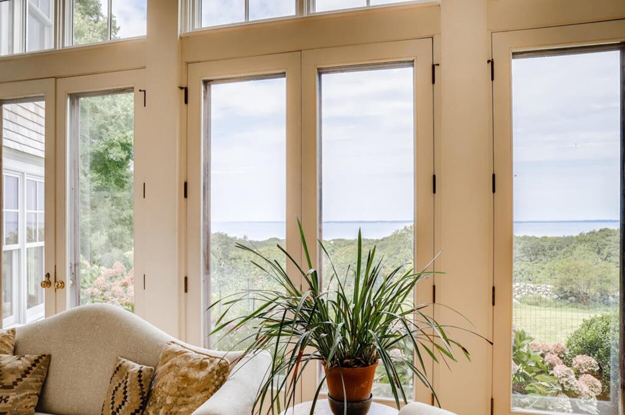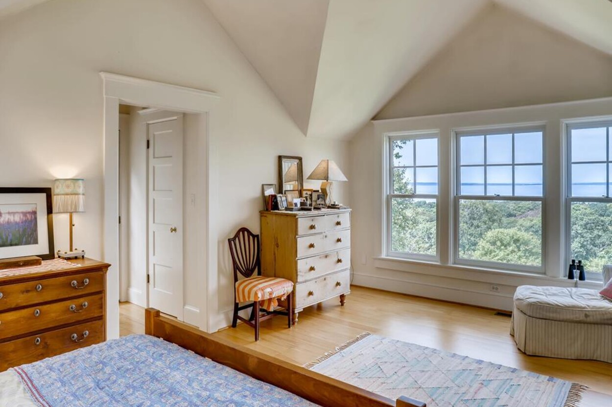 The air conditioned home is privately situated on an elevated grassy lot that benefits from expansive views over the Elizabeth islands facing north west for stunning sunset evenings on the patio.