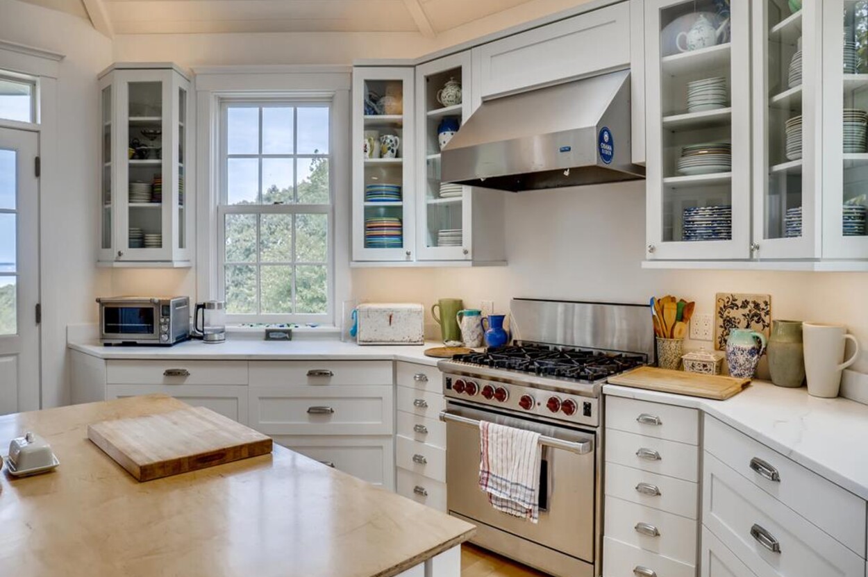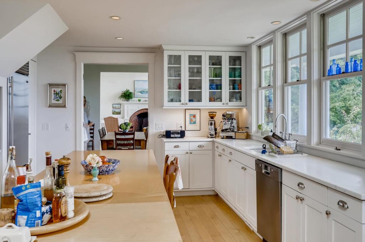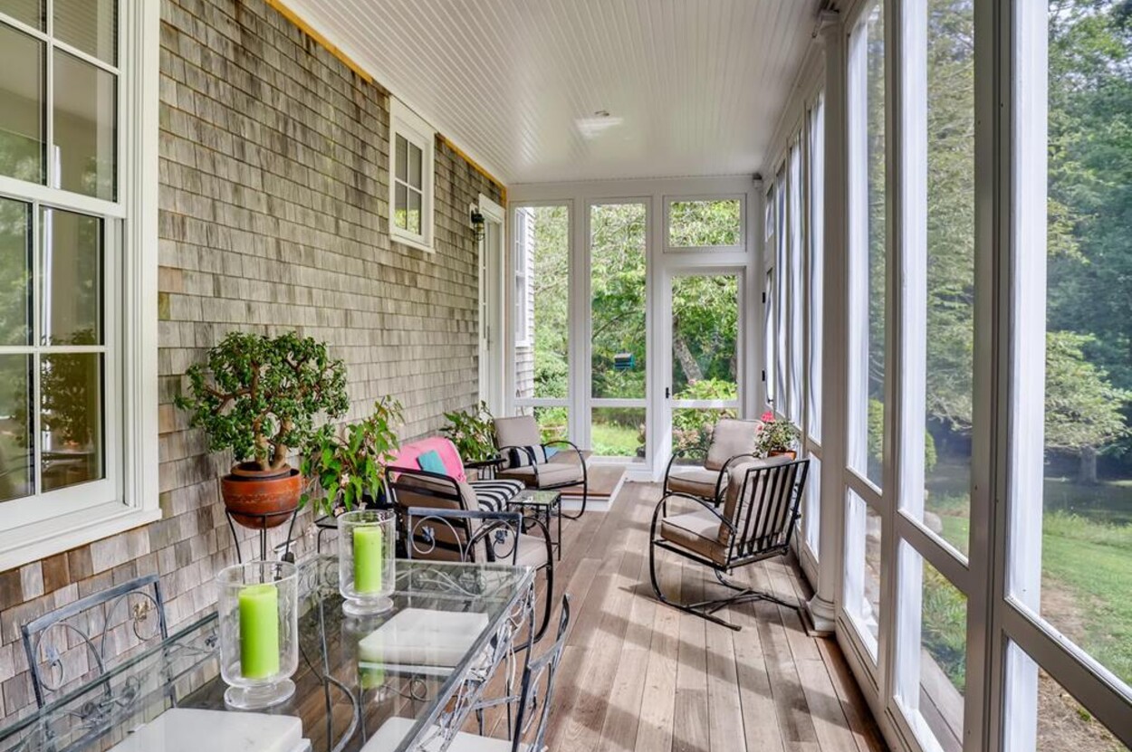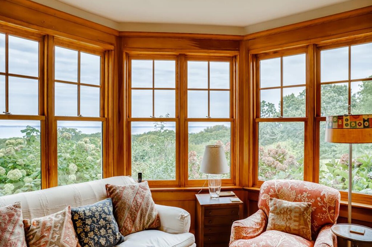 The air conditioned home is privately situated on an elevated grassy lot that benefits from expansive views over the Elizabeth islands facing north west for stunning sunset evenings on the patio.
