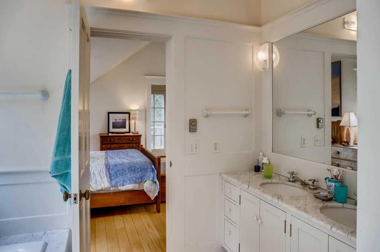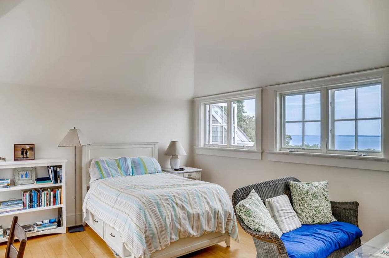 The primary bedroom is privately located on the second floor with a sweet sun deck and private bath.