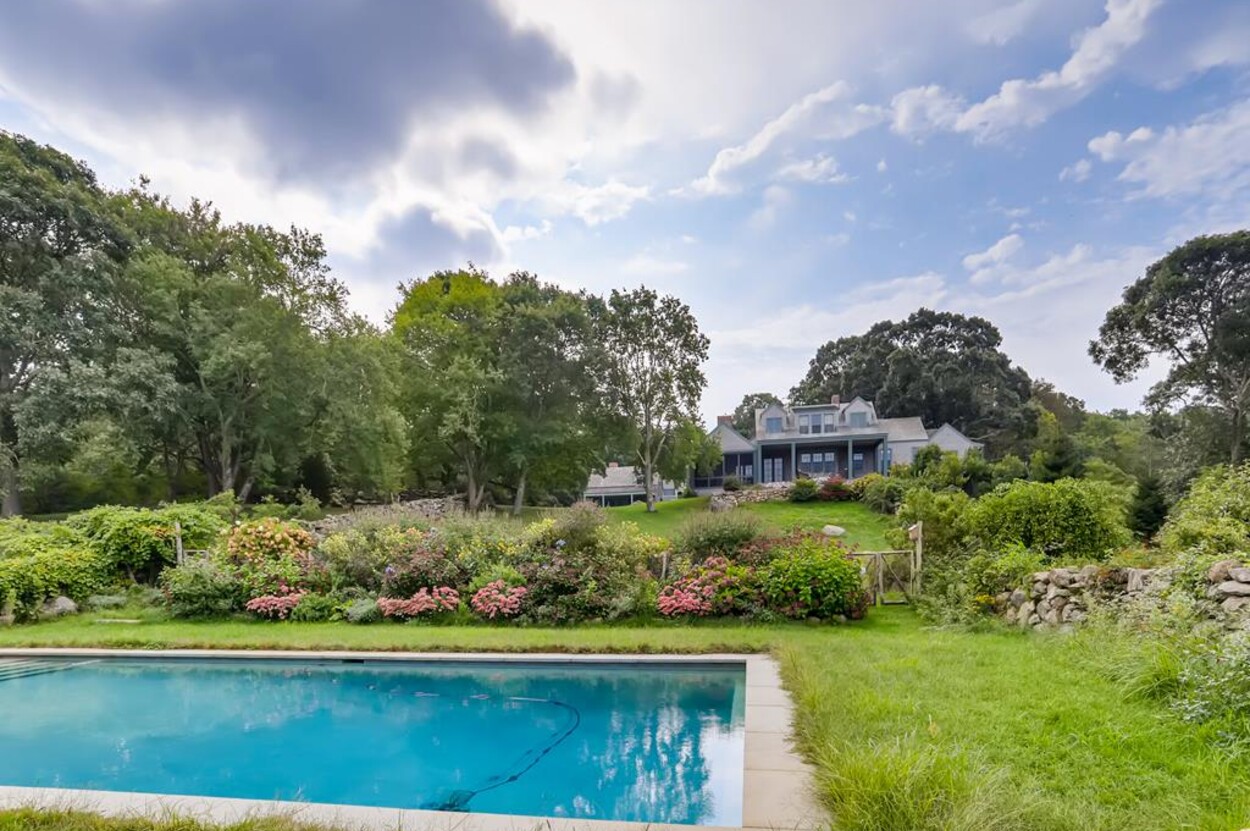 A wonderful house, guest house with private swimming pool and pool house. The 4 bedroom main home as exquisite water views over to the Elizabeth Islands with lovely sunsets over the north shore of the Vineyard. Located in Seven Gates Farm - no longer a working farm, but a private association with beautiful homes, private beaches, ponds, tennis and miles of trails to hike, run, bike and explore.