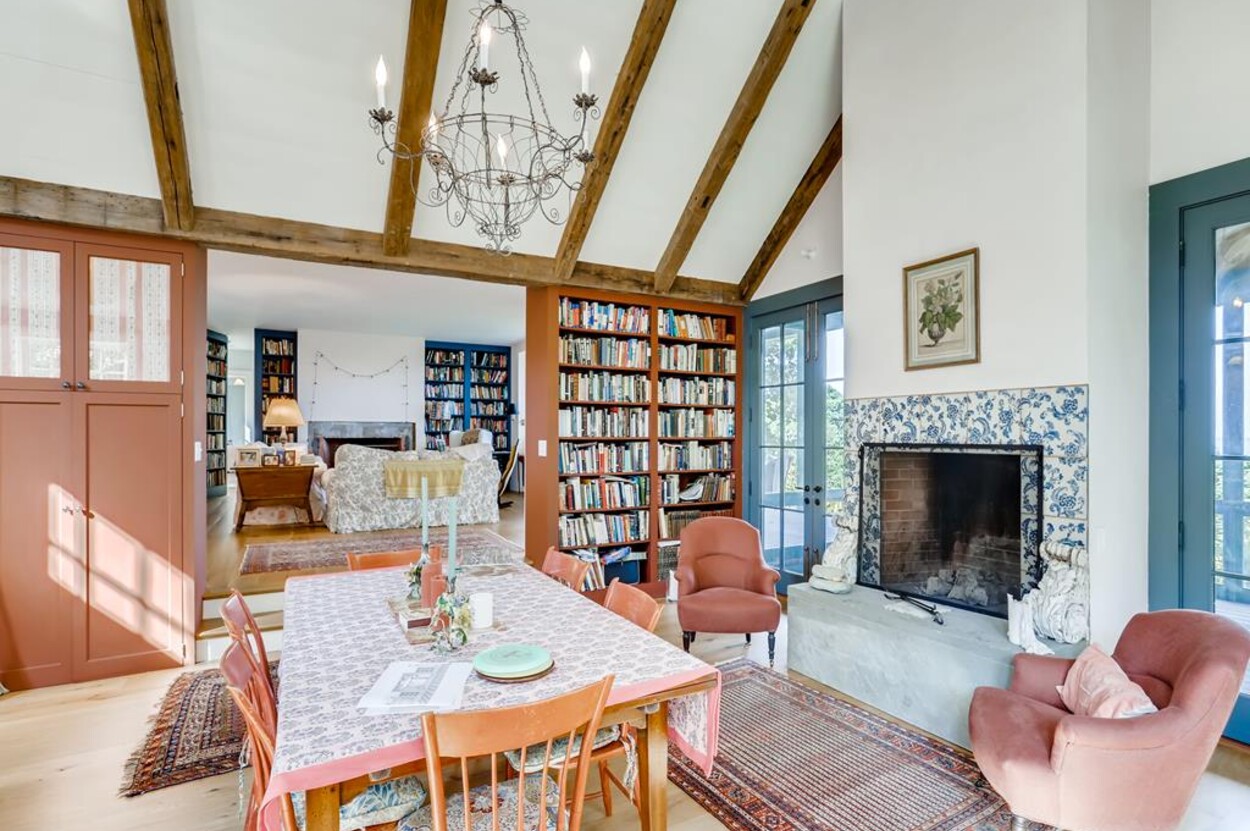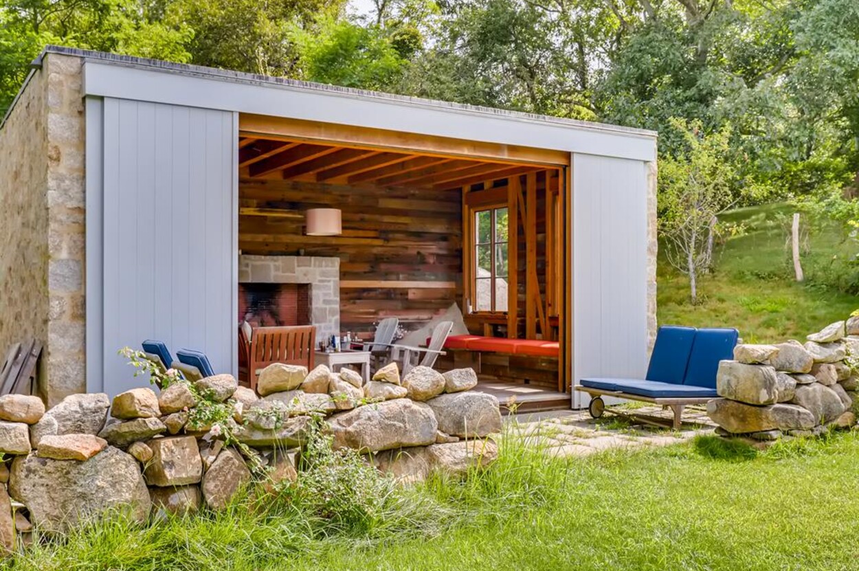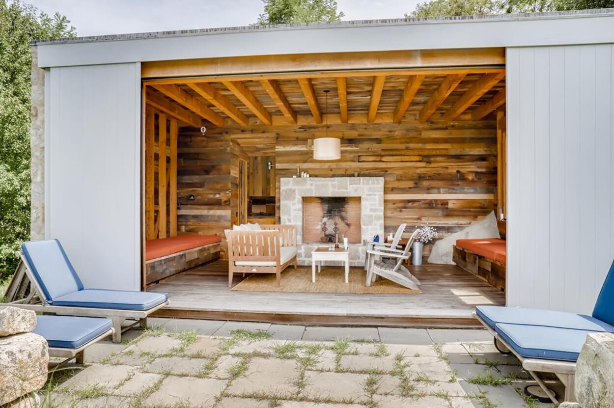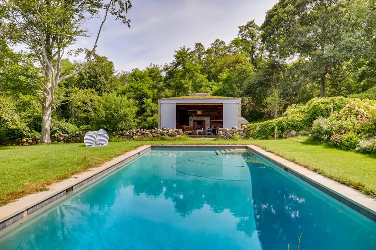 Stroll across the lawn in front of the house to find the swimming and pool house - another cool space to hang out and relax with a fireplace and huge doors that open to a patio. There s also a kitchenette, half bath and outdoor shower.