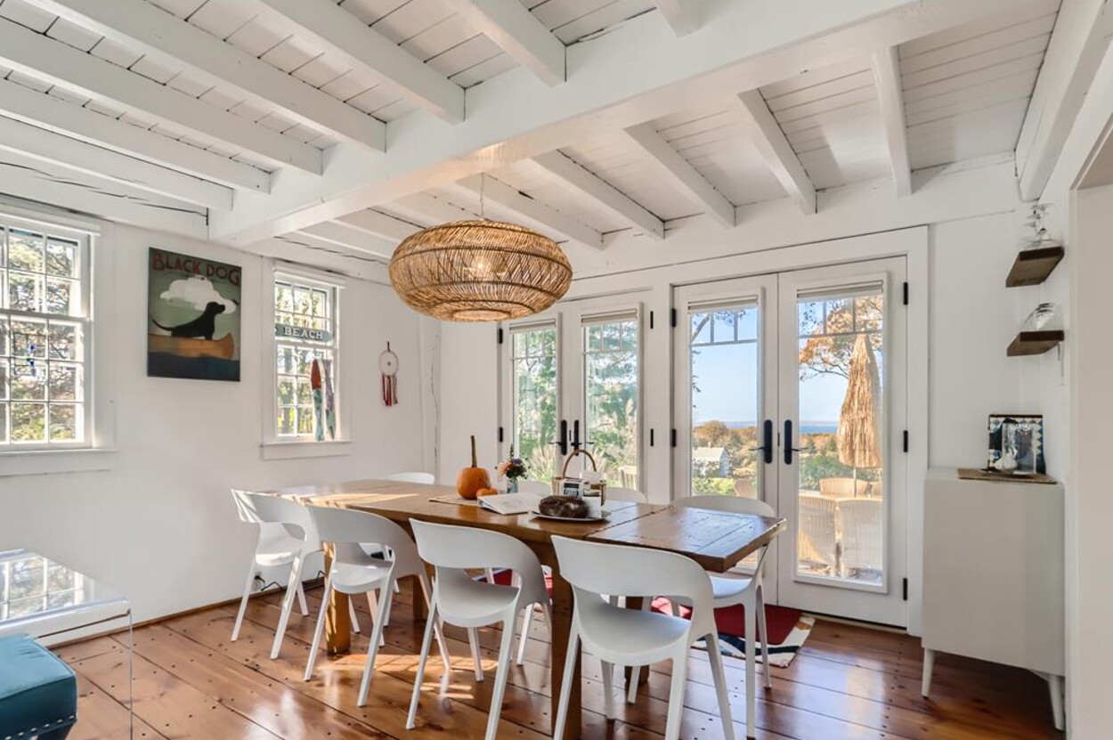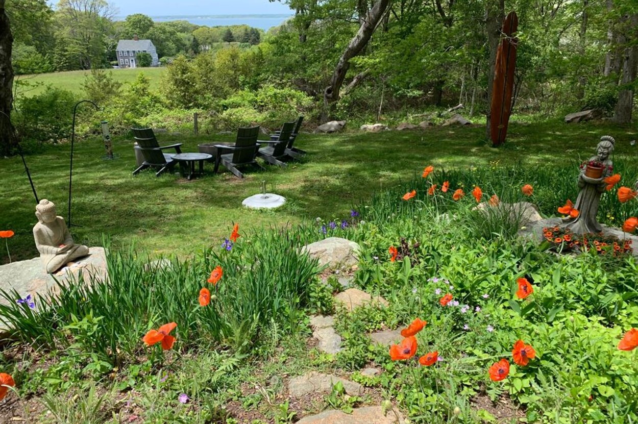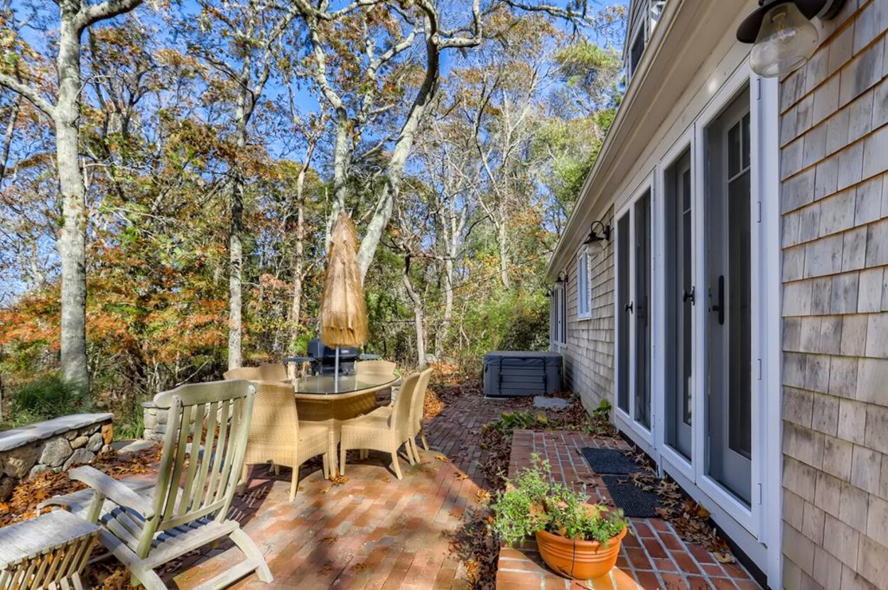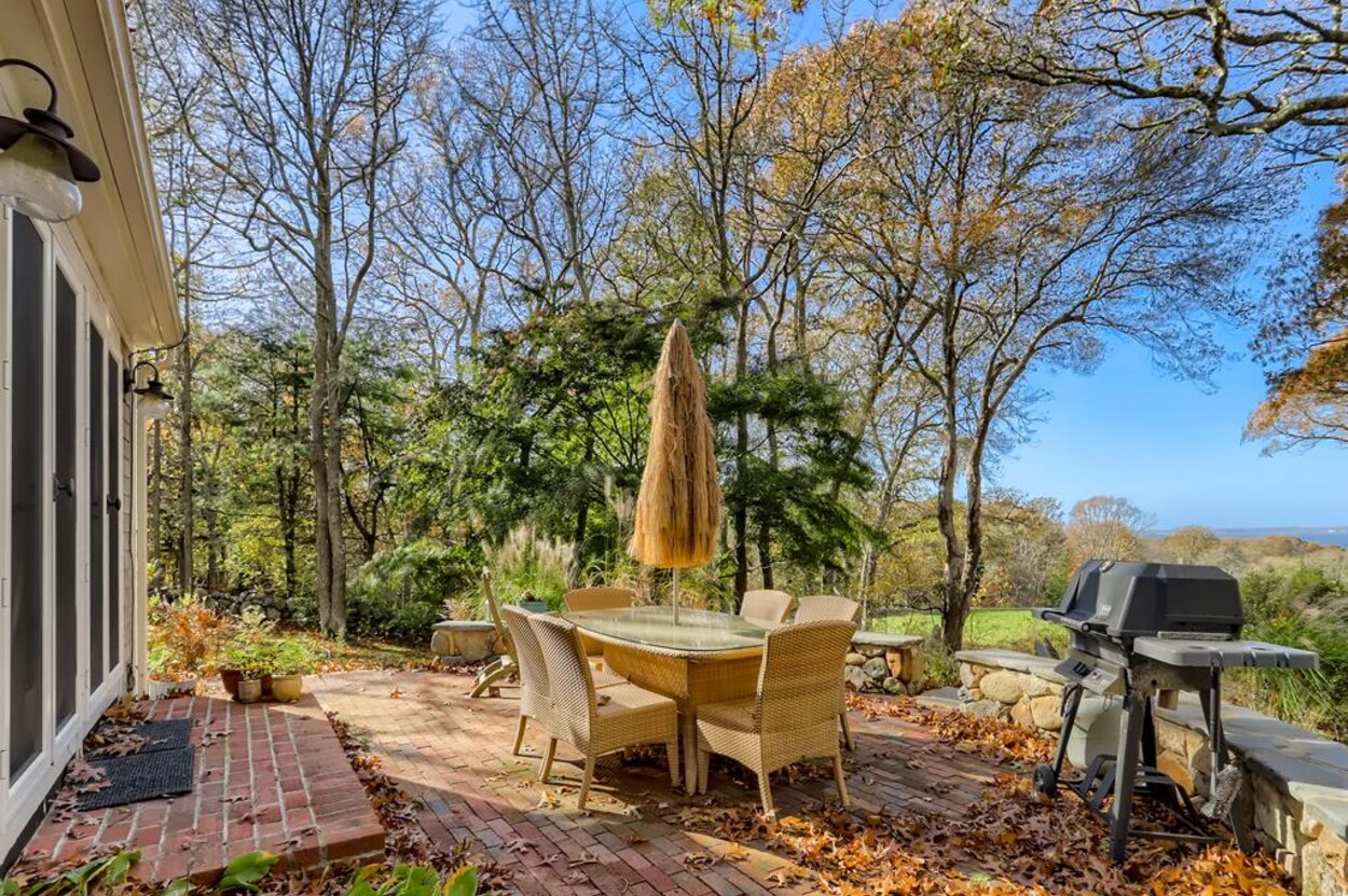 There are multiple outdoor seating areas, a patio with dining table, as well as Solo smokeless fire pit both with views of the sloping meadows, old stone walls and the sea. The property is located steps from Cedar Tree Neck Sanctuary with magical walking trails through the woods and along the coast. Renters may also access the idyllic Lambert s Cove Beach, one of the swimming spots on the Island.