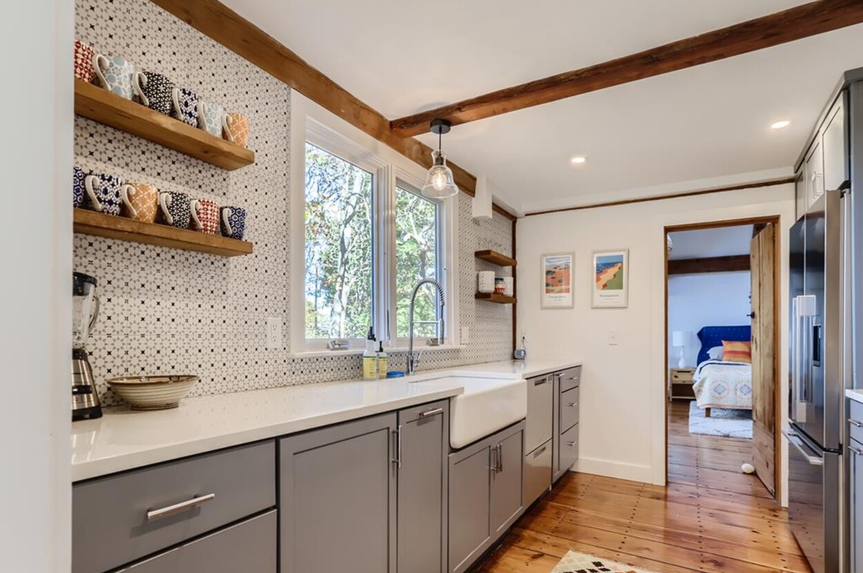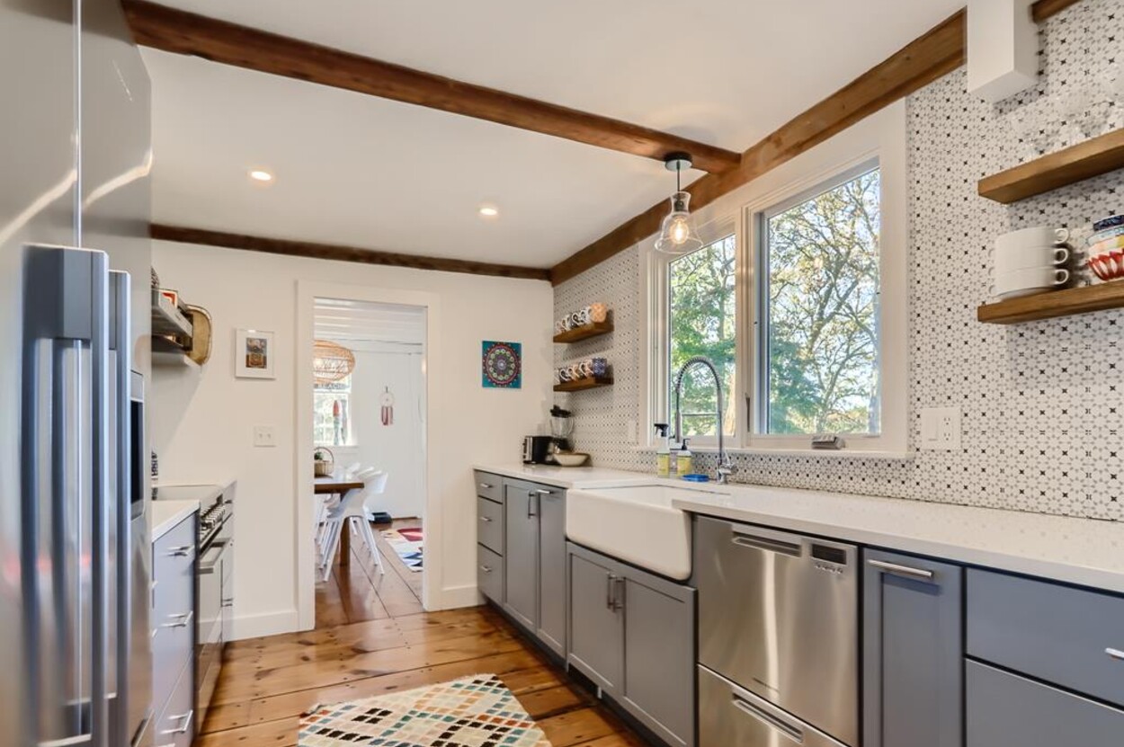 Stunning views of Vineyard Sound and the Elizabeth Islands from this charming renovated farmhouse. This sweet four bedroom home offers an open living and dining area and a beautifully appointed kitchen featuring a chef s grade induction stove, as well as other top of the line appliances and views of the boats as they pass by on the water. There is a spacious first floor primary bedroom with en-suite including a luxurious soaking tub, as well as a hot tub and outdoor shower right outside by the patio. Three cozy guest rooms (two with water views) and a guest bathroom upstairs complete the home. Please note there is wifi and internet is provided via Starlink.